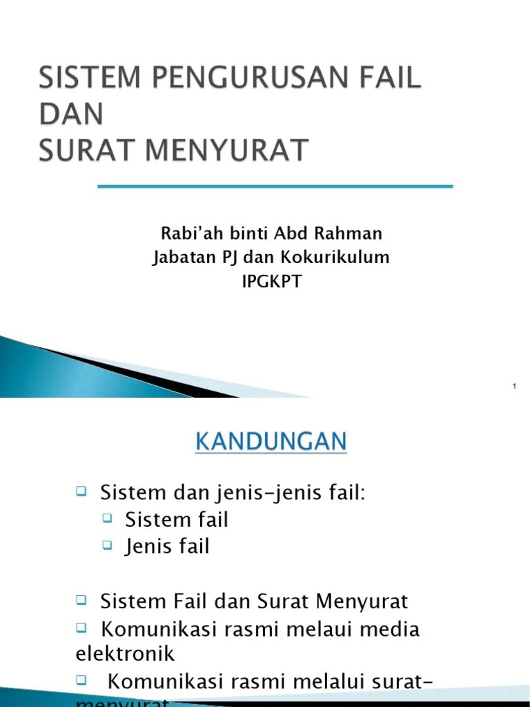 Sistem Fail Dan Surat Menyurat - Sistem Fail Surat Menyurat. Sistem fail dan surat menyurat sistem fail dan surat menyurat kegunaan sistem fail sistem pengelasan fail perkara lain tentang pengelasan . Sistem fail dan surat menyurat 06/07/10 pengurusan gerko; Sistem fail apakah sistem fail? Memastikan sistem fail teratur dan sistematik. Memastikan pengurusan surat menyurat dikendalikan dengan licin dan teratur.